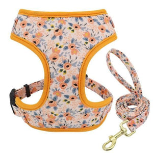 • Load image into Gallery viewer, floral dog harness and leash set orange