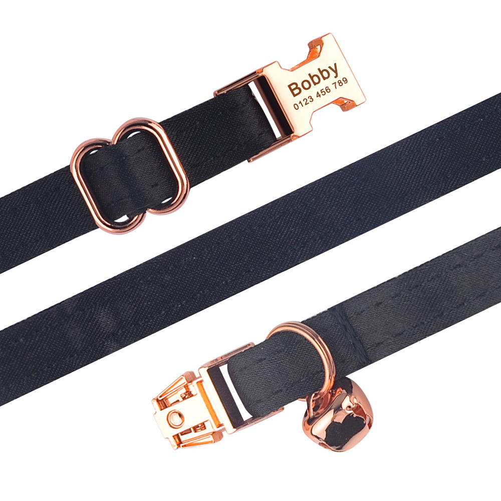 For a classy cat who happens to be black or just likes wearing black, our Black Rose personalised collar is for them. With gorgeous rose gold hardware, this collar is absolutely stunning. For an understated look, treat your kitty to a Black Rose collar.