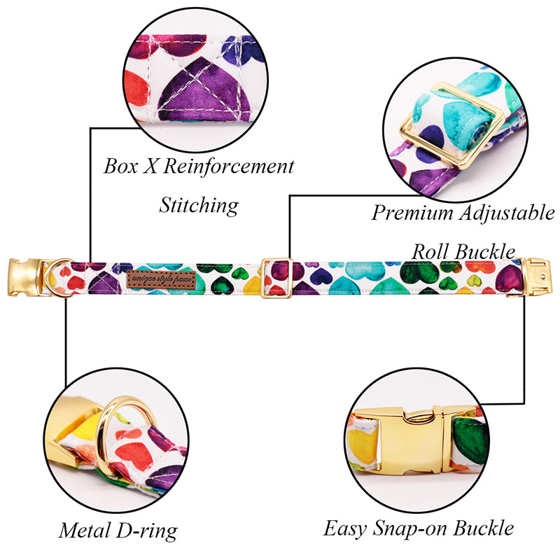 So your pet is a bit of a charmer, do they wear their heart on their sleeve? Our Love Me collar is just the one for them. With a bright, loving heart print and handmade with high quality cotton, they feature gorgeous gold stainless steel hardware for strength & durability and a sweet little removable bow tie. Providing ultimate comfort for your pet they're fully adjustable and it'll be love at first sight, we promise.
