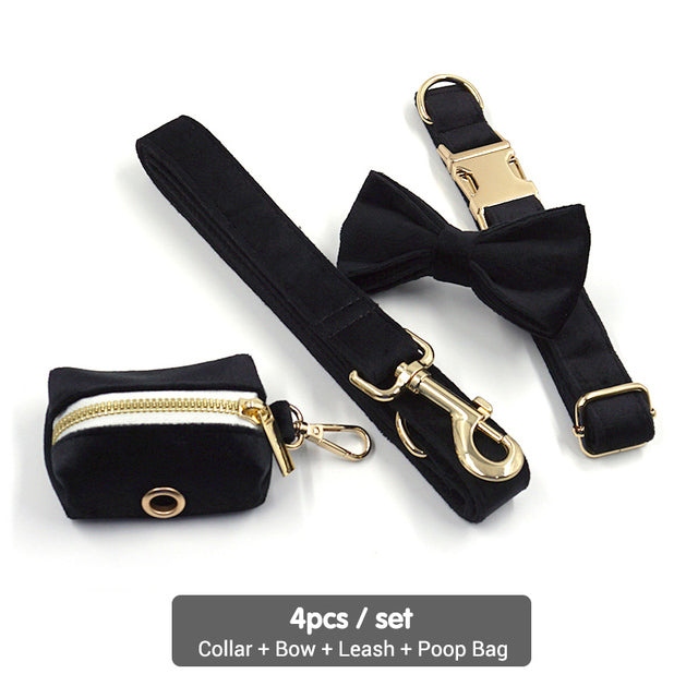 Luxury Velvet Crush Black - Leash, Poop Bag Holder & Personalised Collar