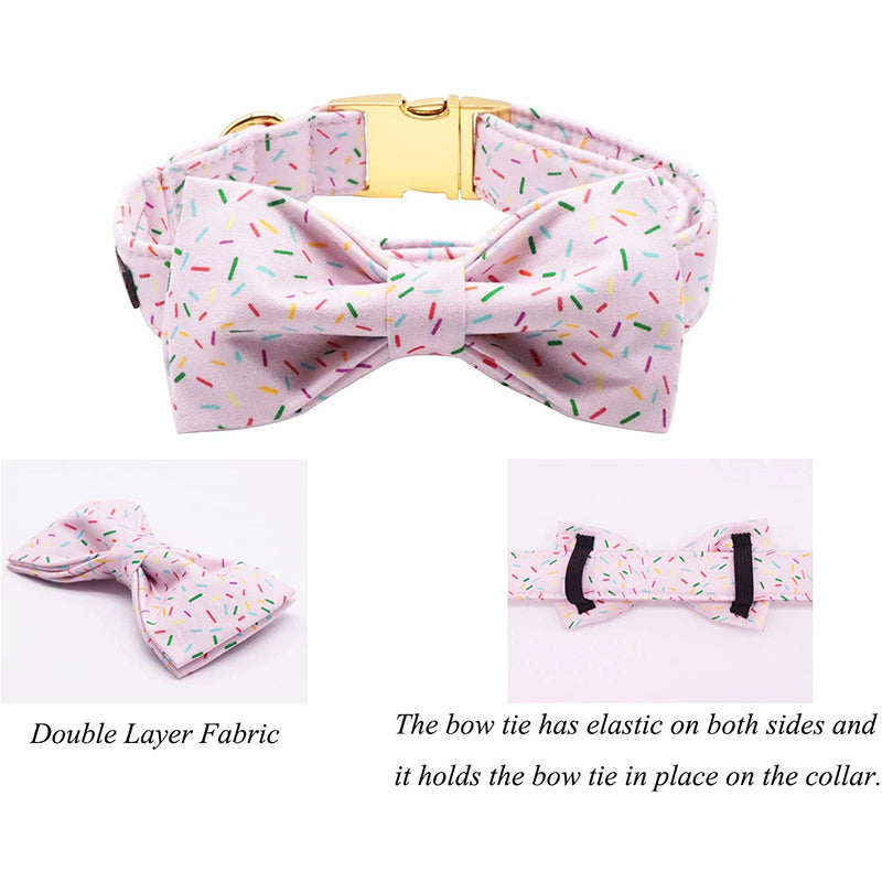 Sprinkles and ice cream, sprinkles and ice cream...yummy, yummy, yummy. Our Strawberry Sprinkles collar is going to make you melt, with a gorgeous sprinkling of sprinkles on lush pale pink. Featuring gold hardware and a cute removable bow, this collar is sure to make your pet feel super fresh and of course look yummy too.