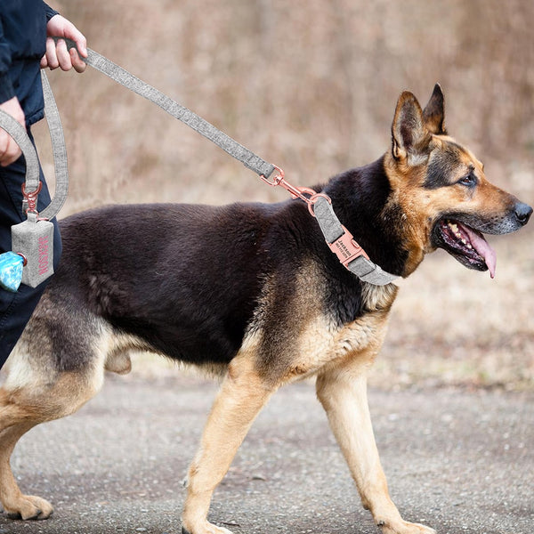 This collar can be engraved with your pets name and your phone number and the poop bag holder can be printed with your pets name or just left blank. Let us know in the personalisation section, we'll look after the rest.