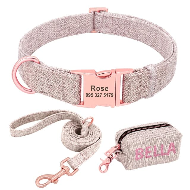 Shout your pet a matching set from our exclusive Houndstooth range. Featuring rose gold hardware and made from soft and durable cotton material, this set includes a personalised collar, personalised poop bag holder and matching leash. It's sure to impress even the most fussy pets...and owners!