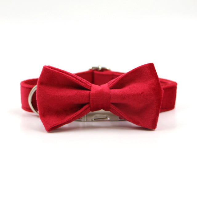 Luxury Velvet Crush Red - Leash, Poop Bag Holder & Personalised Collar
