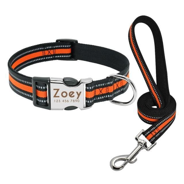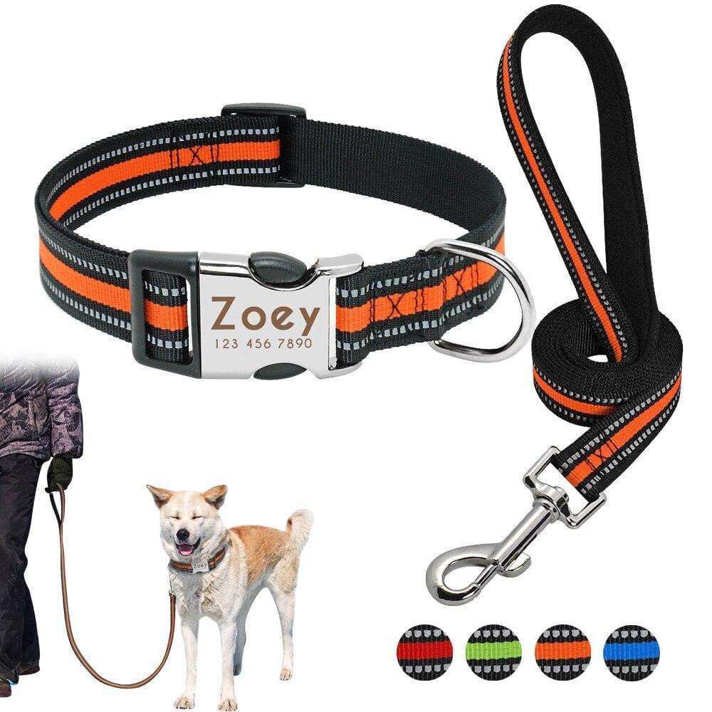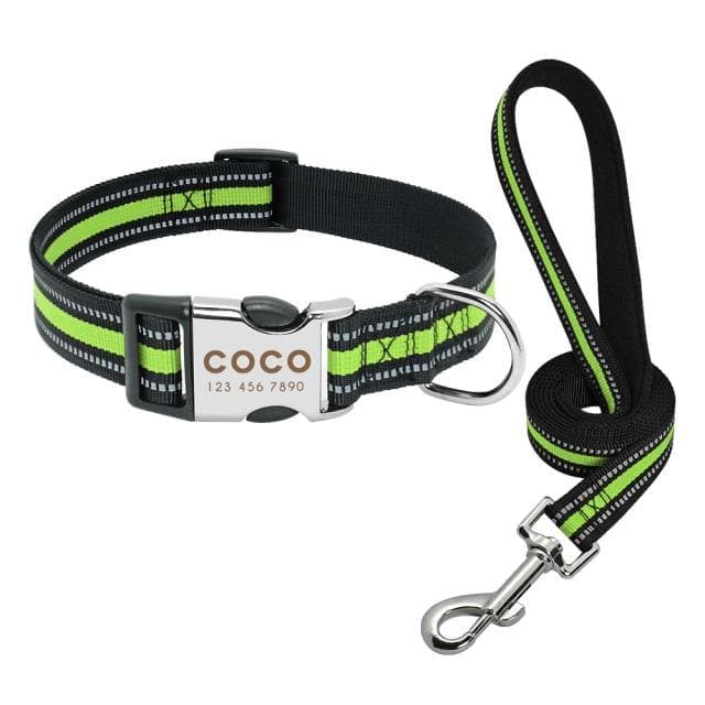 • Load image into Gallery viewer, Personalised dog collar with engraving and matching leash set