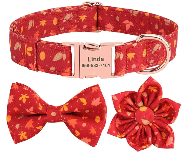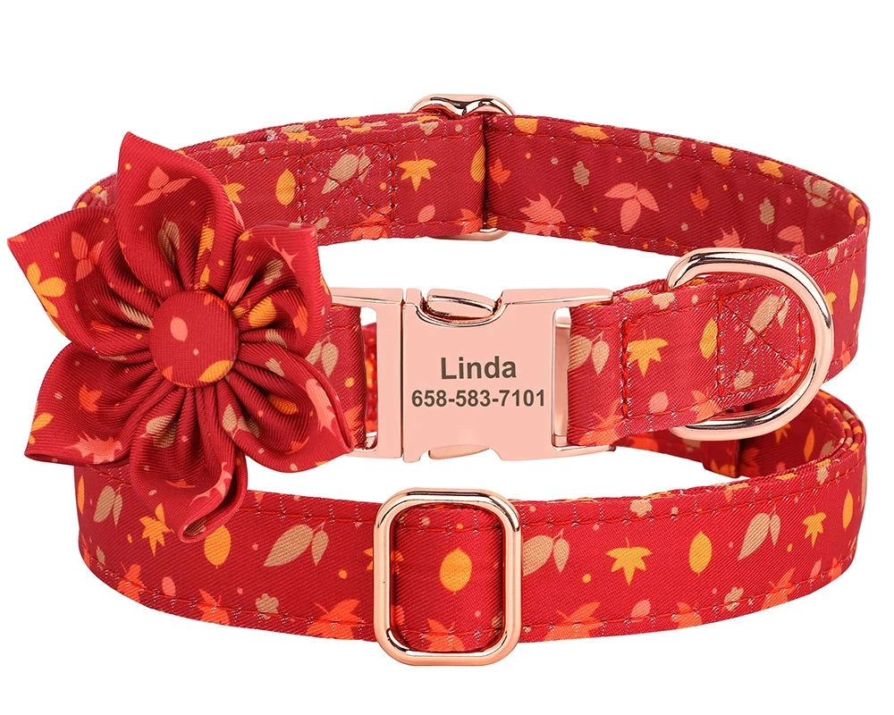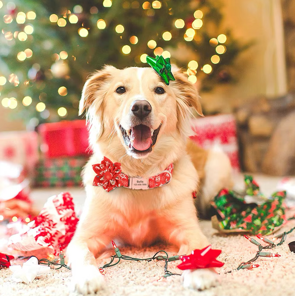 Deck your dog in festive style this holiday season with our personalised engraved Christmas dog collars, featuring luxurious rose gold hardware. Each collar is custom-engraved with your pet’s name and contact info, combining festive charm with peace of mind. Choose from styles adorned with optional removable bow ties or flower accessories, making your pup the most dapper guest at every holiday gathering!