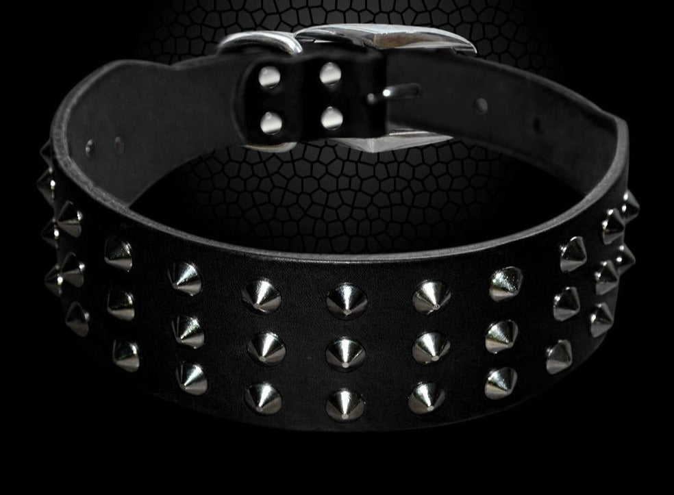 These statement collars are made of premium leather and feature heavy duty buckles and D rings. Made by hand using precision and high quality workmanship, our Leather Rivet range is suitable for the most eager, strong and robust dogs. These collars can accomodate all different sizes of dogs with different widths available in the size range. Get prepared to make a statement in this cool collar.