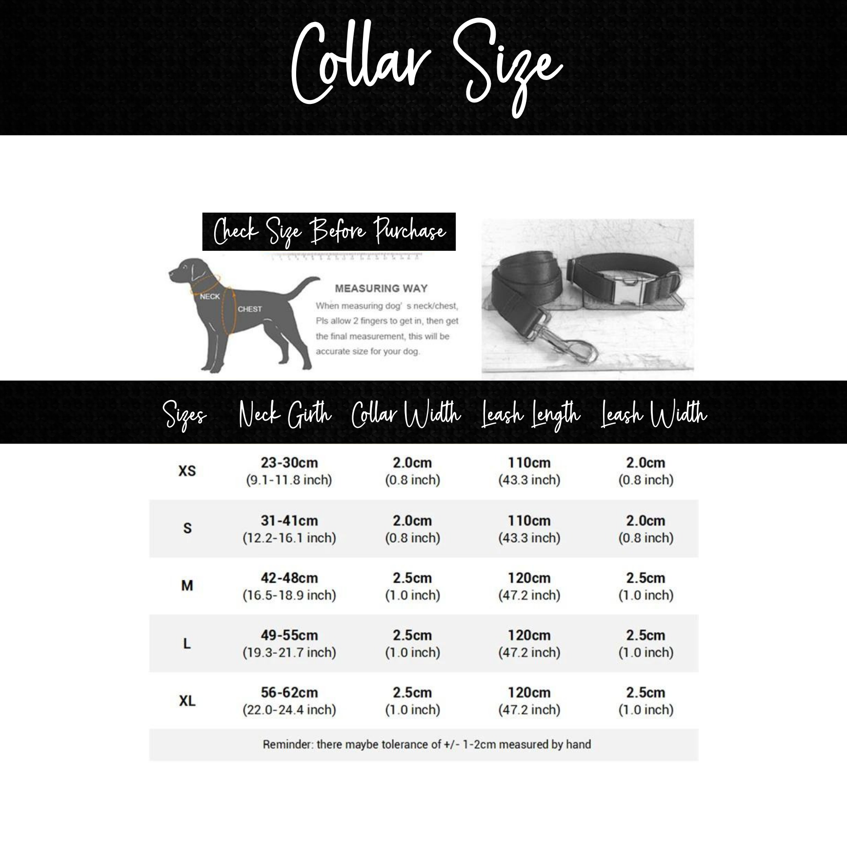 M, L and XL sets include a M size leash