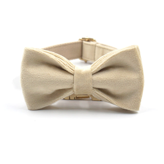 Luxury Velvet Crush Beige - Leash, Poop Bag Holder & Personalised Collar