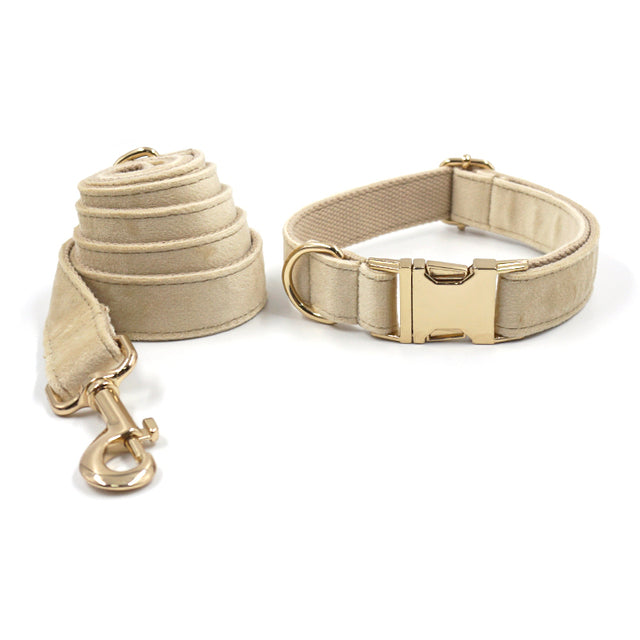 Luxury Velvet Crush Beige - Leash, Poop Bag Holder & Personalised Coll