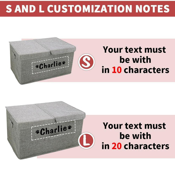 • Load image into Gallery viewer, large dual compartment pet toy storage box personalised with name size