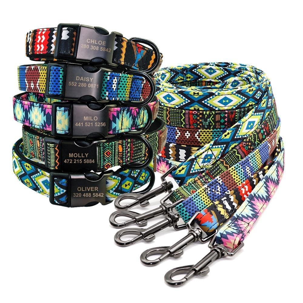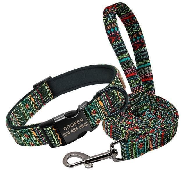 • Load image into Gallery viewer, personalised dog collar and leash set engraved with name and phone number
