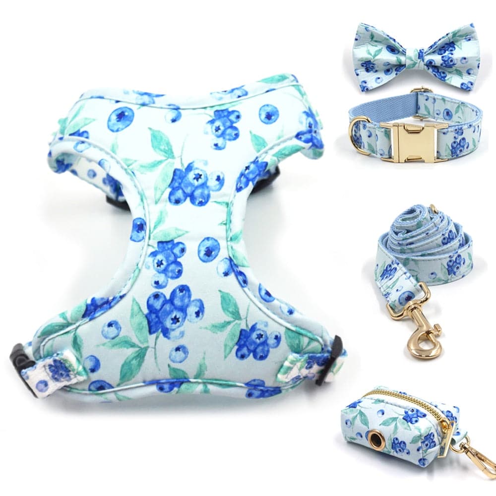 Dreaming of blueberries, smoothies and soft, sweet hues of pale blue and deep rich royals...This range was made for you. In a gorgeous soft print featuring berries and leaves, this range is going to make you feel soft inside, just like a blueberry feels. Choose from a set or individual items to make your dogs look totally complete. Handcrafted to perfection and to the highest quality standards, these dreamy pieces are going to become a favourite.